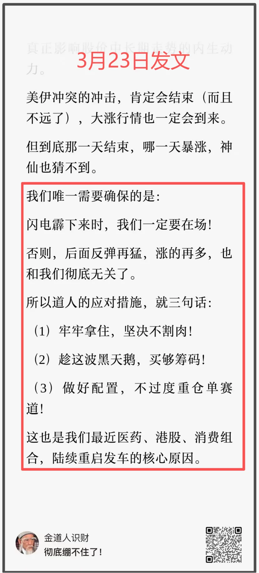 这是我们3月23日在这波黄金坑最底部反复强调的: