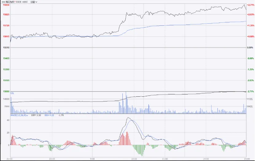 (1)价格走势:早盘跳空高开后迅速拉升,全天维持强势震荡,截至收盘涨幅2.16%,成功突破前期震荡平台,逼近16000元/吨心理关口。