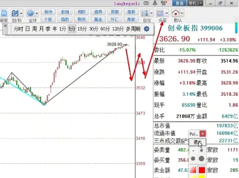 5分钟级别今日完成第5笔回调,后续可关注5笔上涨的延伸情况。
