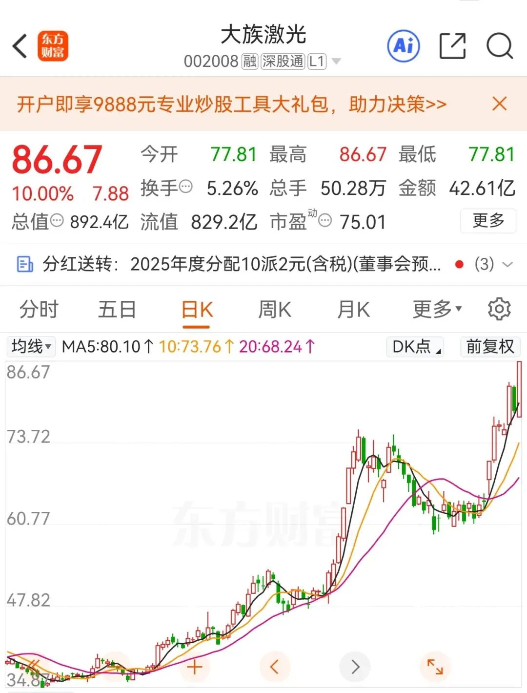 (大族激光好像开年到现在,翻倍了!)