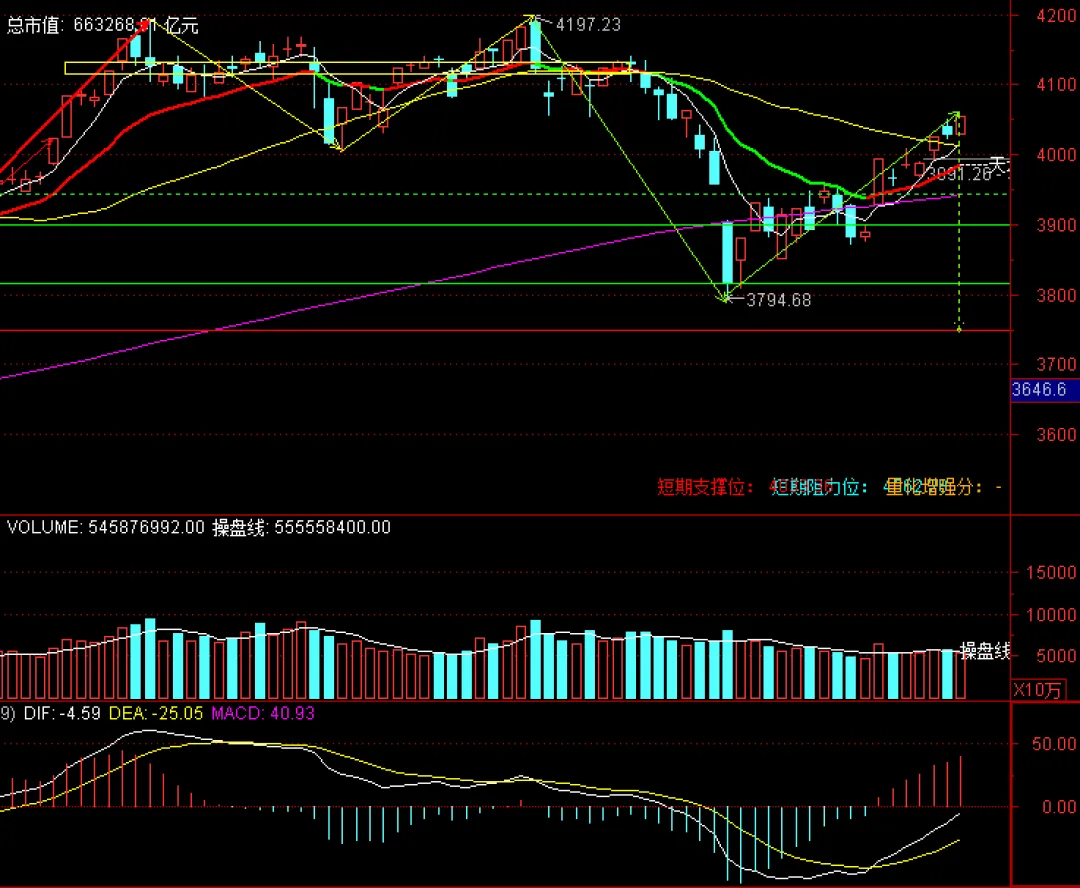 接下来就是考验下一个压力位4111点了, 这才是真正的套牢筹码密集区,到这里我的判断是大概率不会一蹴而就,会继续借助消息做震荡,等上方的筹码松动些了,冷不丁就开始反攻了,如果这里让我建议,我还是建议大伙不要听我的建议,哈哈哈,自己判断才能入心不是吗?(建议就在前面几篇文章的题目中,自己感受吧!)