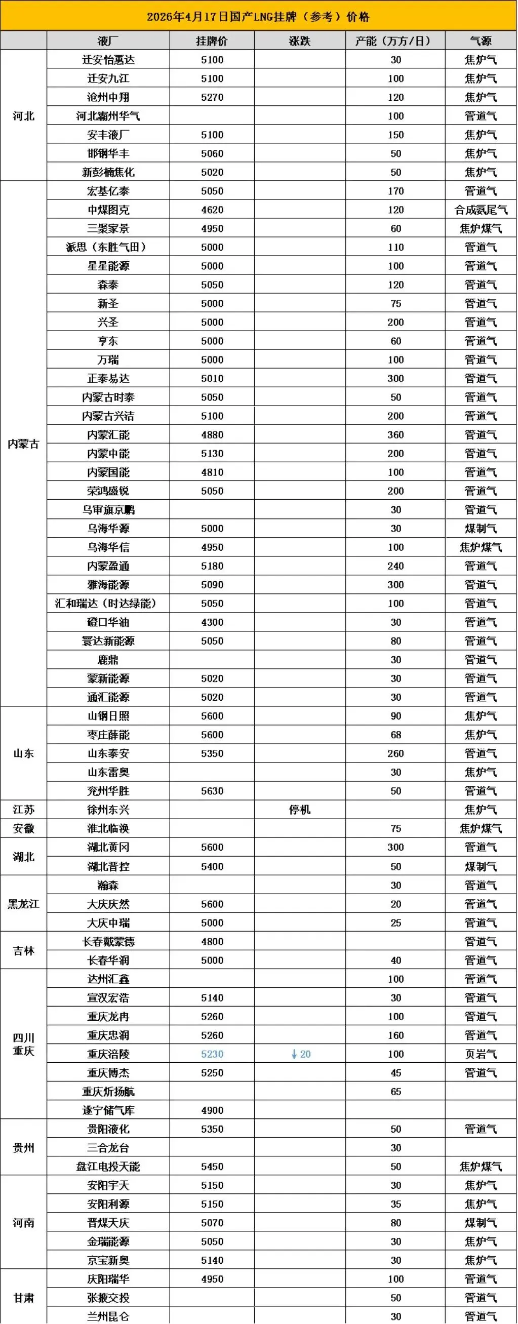 为了方便朋友们及时了解市场动态,掌握市场行情,把握市场机会。亿慧云天然气每天为大家提供行业新闻,国内LNG挂牌价格,本价格信息只做参考,具体提货价格请与工厂销售联系。(当天调价见底下留言)