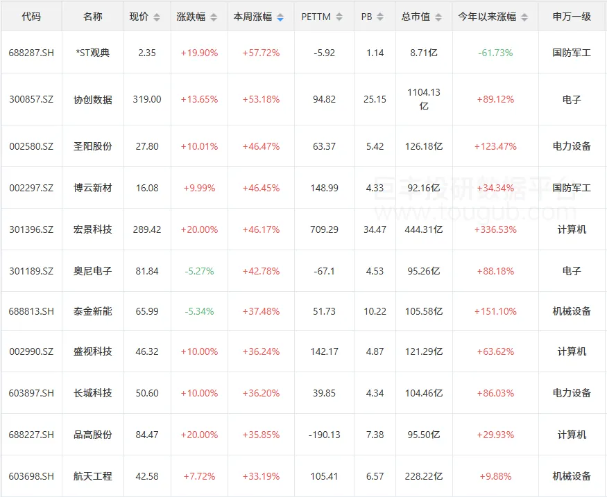 一周内多股涨幅超预期
