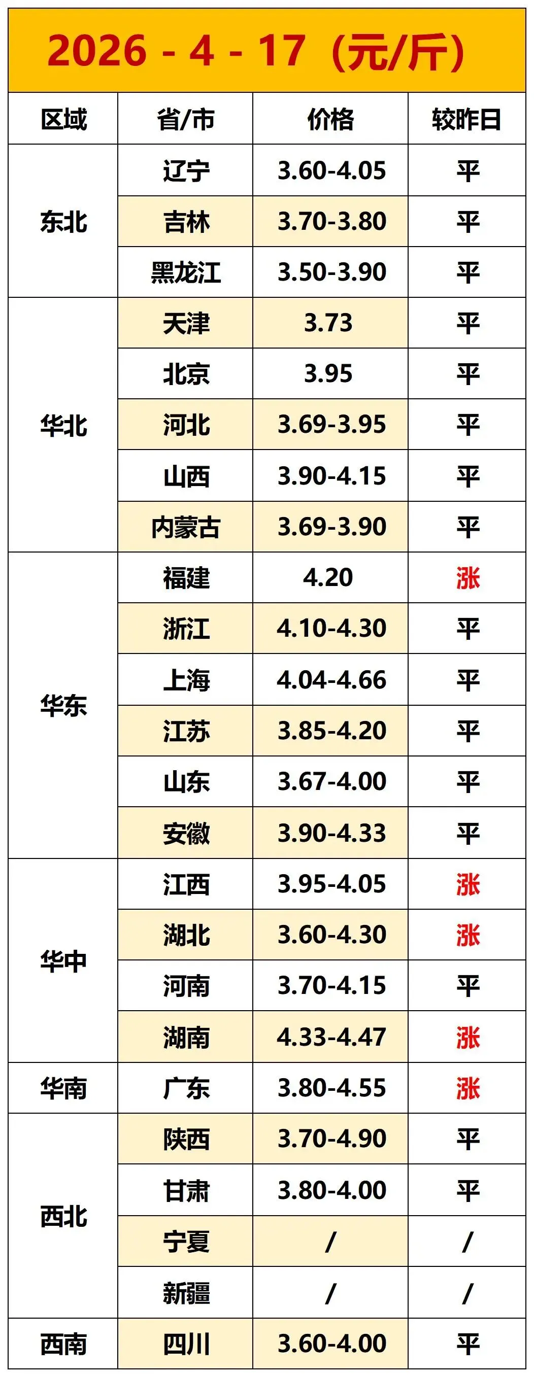 2026年4月17日全国各地鸡蛋报价