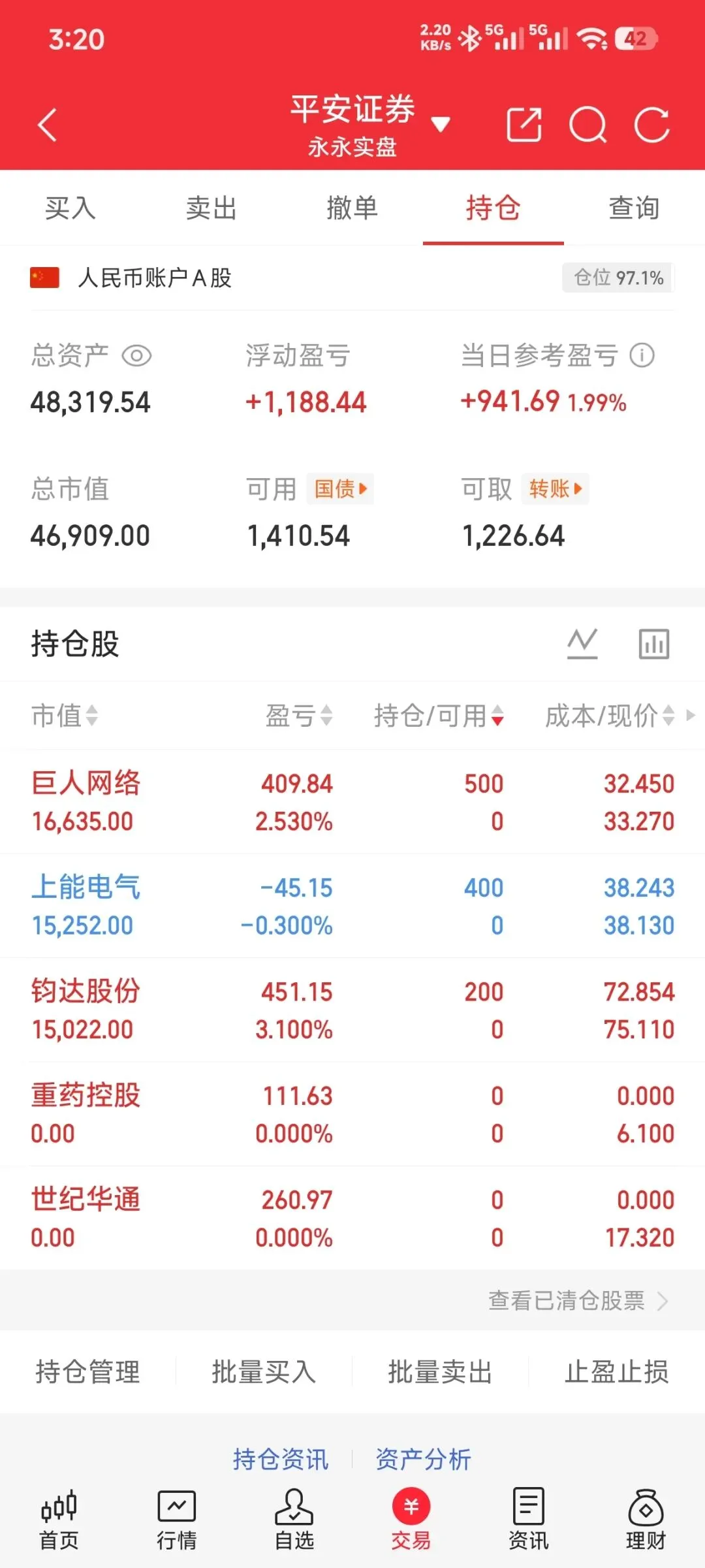 今天大盘指数微高开继续冲高,整体震荡向上,量能缩了一点。昨天买入医药光伏和游戏板块的三只股,今天医药个股开盘冲高走了,游戏板块卖出切换其他游戏个股,光伏做了一个短T,继续新买了一个其他光伏个股,光伏这块我目前而言还是做的短线,快进快出。指数这块依旧维持震荡看法,看看明天如何。