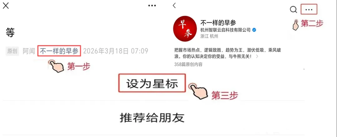 记得把“不一样的早参”星标,才能第一时间收到早评,如图所示