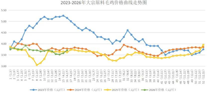 3、饲料:本周玉米现货均价为2367元/吨,国内主产区基层余粮已不足两成,高成本支撑贸易主体挺价心态较为坚挺,,贸易主体挺价心态浓厚,继续执行合同订单为主。饲料企业采购谨慎,随用随采。国内玉米现货价格基本稳定。本周豆粕现货均价为3040元/吨;因美国中西部地区的多雨天气放慢了大豆播种进度,叠加阿根廷卡车司机抗议活动令港口运输迟滞,巴西大豆收割近尾声,创纪录产量压力持续兑现。下游生猪养殖持续亏损,且目前需求清淡令饲料养殖企业拿货需求有限,豆粕供应将逐渐宽松,于偏弱行情。4、本周重点白羽肉鸡屠宰企业平均开工率为68.50%,较上周下降13.23%,主要受鸡源供应偏紧,价格上涨,屠宰场产品走货不畅,价格下跌,持续亏损,屠宰场多放假或轮休避免进一步亏损。5、本周重点白羽肉鸡屠宰企业鸡分割品库容率约为89.15%,较上周下降1.03%,开工率下跌导致分割品库存下跌。6、本周巴西鸡产品市场呈现价格回升态势,2026年第一季度巴西鸡肉出口量达145万吨,创历史纪录,3月日均出口量达2.1万吨,均价1826.80美元/吨,出口表现强劲。圣保罗批发市场冷冻鸡肉分割品价格全面上涨,鸡胸肉从8.30雷亚尔/公斤涨至8.50雷亚尔/公斤,鸡大腿从6.00雷亚尔/公斤涨至6.20雷亚尔/公斤,鸡翅从10.20雷亚尔/公斤涨至10.70雷亚尔/公斤。毛鸡价格保持稳定,圣保罗每公斤活鸡价格维持在4.50-4.65雷亚尔。地缘政治冲突持续推高海运费和货运保险成本,出口物流压力增大,但巴西政府通过延长卫生证书有效期、允许货物改道等措施缓解出口影响。本周分割品价格及下周行情判断