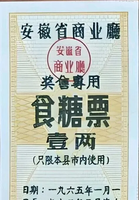 这个黄里透白的细长票,叫安徽省食糖票,一两重,票上方正中按着鲜明红印,“奖售专用”,最下边还认真写着日期,更显珍惜。糖票那年月算宝贝,逢年过节才舍得凑出一两,家里有孩子盼着分糖,奶奶常说:“嘴再馋也不能多吃,留到年三十糖水才够味”,糖票现在普通的没人稀罕,市场价几块,早期带章、印刷错版、特殊造型票子能上几十元乃至上百元,但那种平常家里极少见,一般都在藏家乐手里压着。
