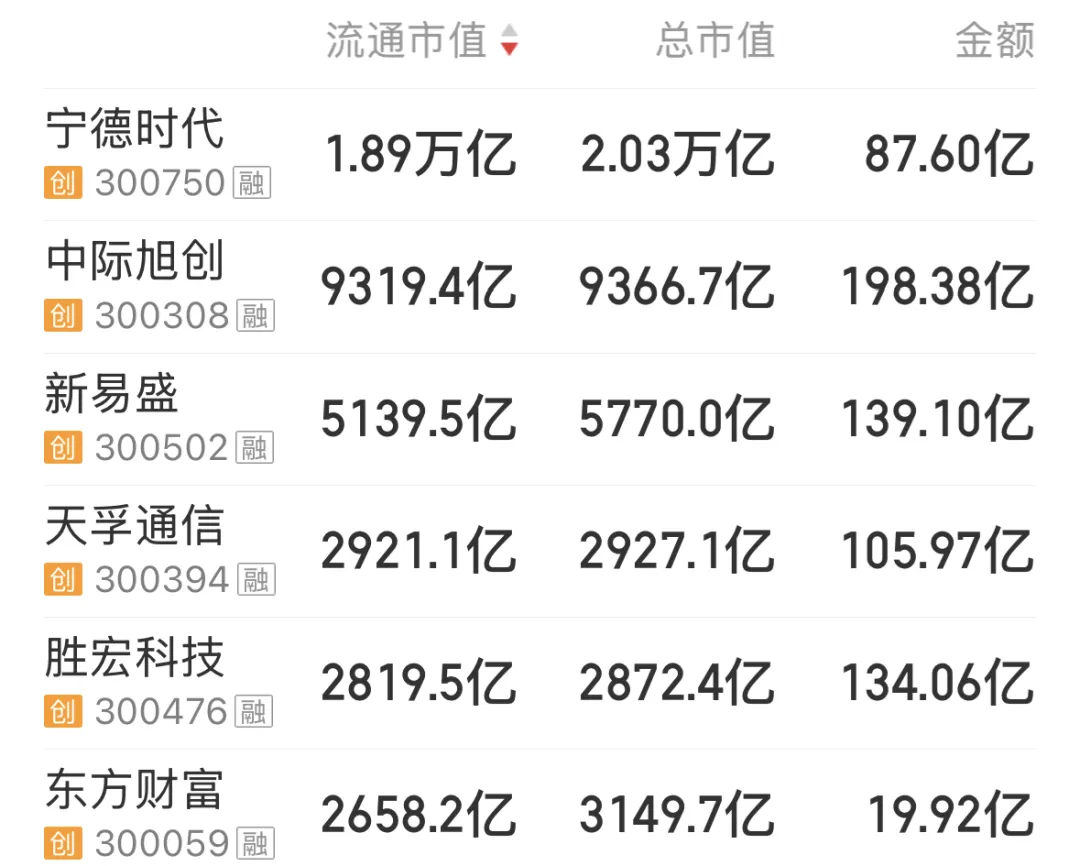 要知道,创业板指数是按个股流通市值加权计算,查看创业板个股流通市值榜单,宁德时代断层领先,其次是中际旭创和新易盛,这三家企业流通市值在创业板中权重极大,也就是搞懂这三家企业上涨逻辑之后,就知道创业板牛市的逻辑。