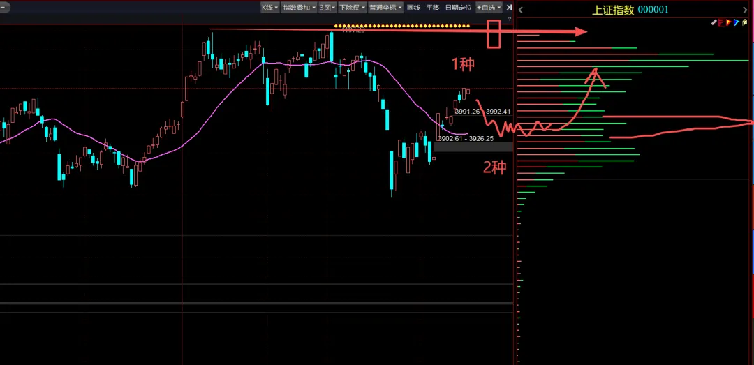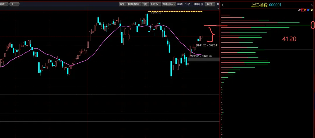 现在运行到规则之外的阶段,用规则,无法判定这个上涨是怎么发生的,所以指数如果直接上去,那么我们第一个要关注的位置就是4120点附近,也就是目前最长筹码位置。