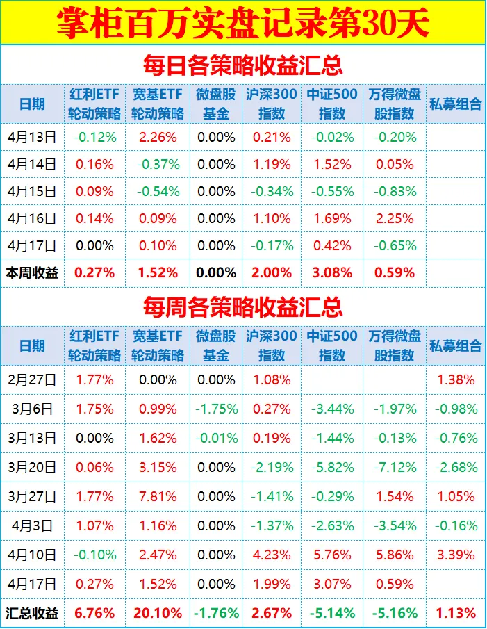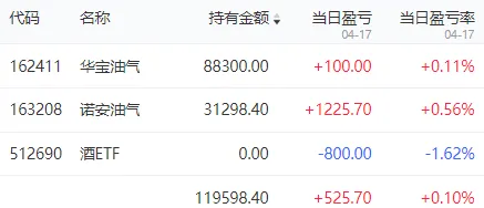 今日中证500指数上涨0.42%,账户上涨0.1%、盈利500元,卖出了白酒ETF,油气ETF做了T,目前持仓油气ETF12万,仓位20%。