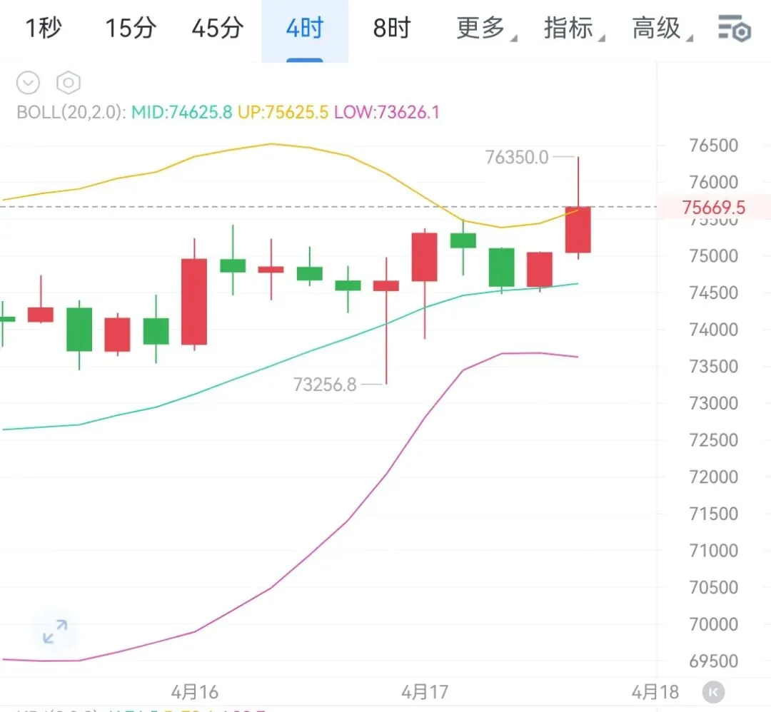 当前四小时图显示,行情始终稳健运行于布林带中轨之上,这一位置作为中期多空分水岭,近期屡次回踩均获得有效支撑,表明下方买盘承接意愿强烈。与此同时,价格已多次向上试探前期高位压力区域,虽然尚未形成有效突破,但反复冲击已逐步消耗上方阻力,后续走出突破走势的概率正在显著提升。