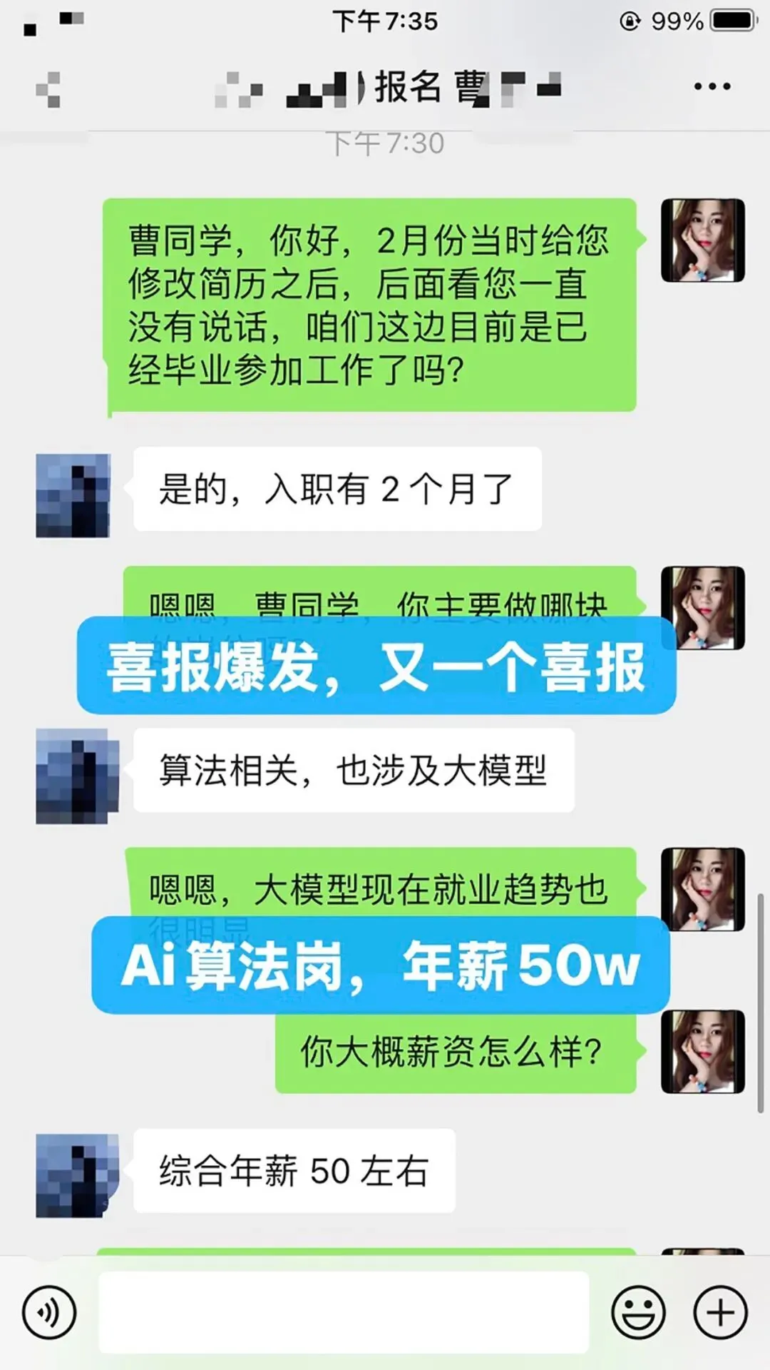确保你学习完以后,能够具备在实际工作当中解决实际问题的能力,成为一名合格的AI算法工程师。并且该计划承诺在校应届生就业薪资拿不到29W、在职人员最低薪资涨幅低于40%-50%,均可以全额退款。目前已经有上千位同学通过该计划拿到offer了,平均薪资达到35w+,最新一期学员就业薪资最高能拿到85K!