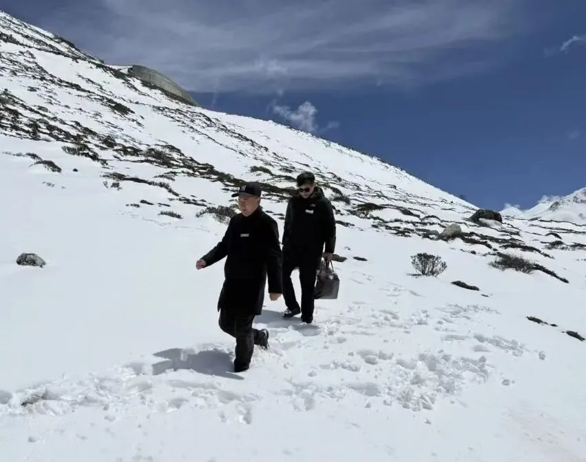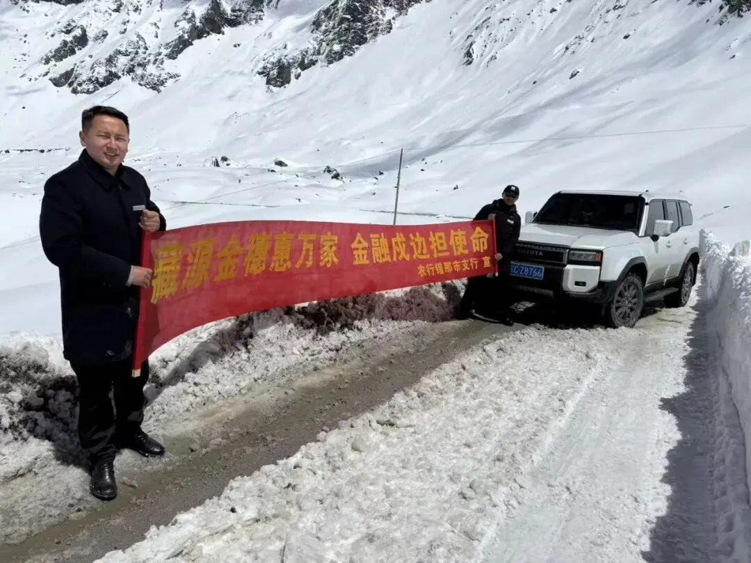 特别是近期受天气影响,出行不便,不少群众有着迫切的业务办理需求。“民有所急,必有所应”。在了解到群众的困难后,农行山南错那曲卓木营业所主任巴桑次仁决定尽快前往雍布搬迁点开展流动金融服务,随后在4月9日,他们踏上了征途。当日雍布搬迁点正降大雪,本就崎岖难行的山路被厚厚的积雪完全覆盖,路面湿滑结冰、行车视线严重受阻。但营业所员工深知当地群众对金融服务的迫切需求,丝毫没有退缩,积雪没膝,挡不住服务的脚步。经过艰难跋涉,他们最终顺利抵达雍布搬迁点。