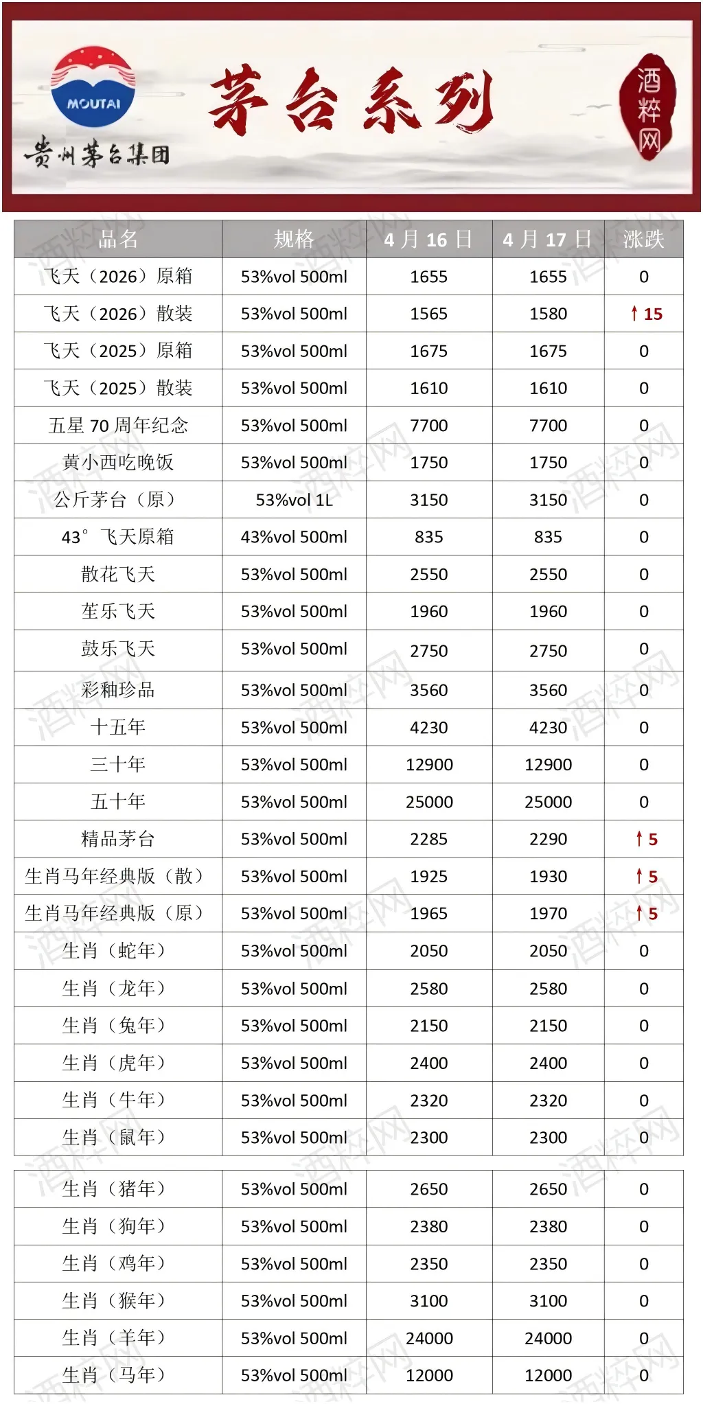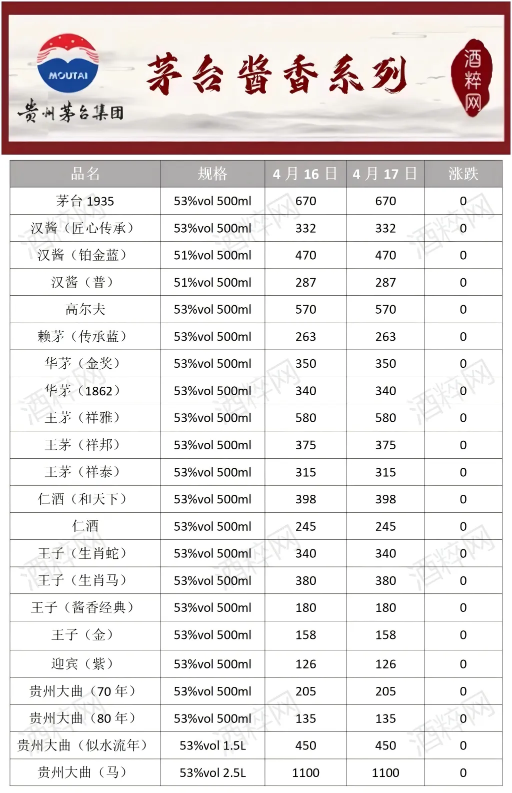 当前位置:首页>行情>酒粹•日价|4月17日全国名优酒价格行情