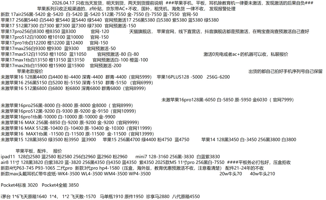 (1)二级市场为自由交易市场,价格实时波动,可能每个小时的卖价都不一样,此报价为华强北市场收货参考行情,实际结算价见公众号:鸟哥撸货数码结算价。