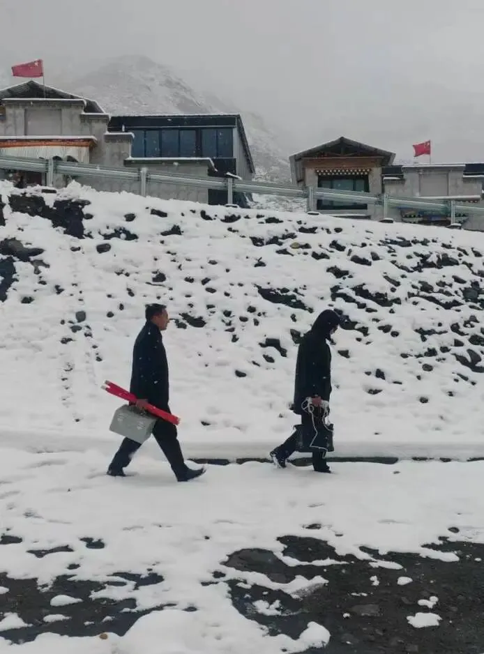 特别是近期受天气影响,出行不便,不少群众有着迫切的业务办理需求。“民有所急,必有所应”。在了解到群众的困难后,农行山南错那曲卓木营业所主任巴桑次仁决定尽快前往雍布搬迁点开展流动金融服务,随后在4月9日,他们踏上了征途。当日雍布搬迁点正降大雪,本就崎岖难行的山路被厚厚的积雪完全覆盖,路面湿滑结冰、行车视线严重受阻。但营业所员工深知当地群众对金融服务的迫切需求,丝毫没有退缩,积雪没膝,挡不住服务的脚步。经过艰难跋涉,他们最终顺利抵达雍布搬迁点。