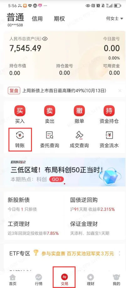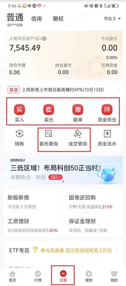 刚才讲转账就说到了交易页面,这个页面对于我们股民来说是使用频率仅次于行情页面的一个页面了。