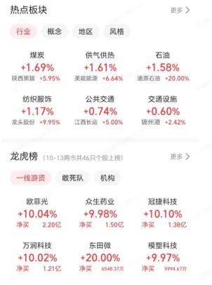 下面还可以看到更详细的统计,比如,今天有多少只股票上涨有多少只下跌,哪些股票是涨幅最高的,当日热门的行业/概念板块的涨跌幅是哪些,哪些股票被一线游资炒作的比较厉害,以及像北上资金、融资融券等重要的资金面流入流出情况......
