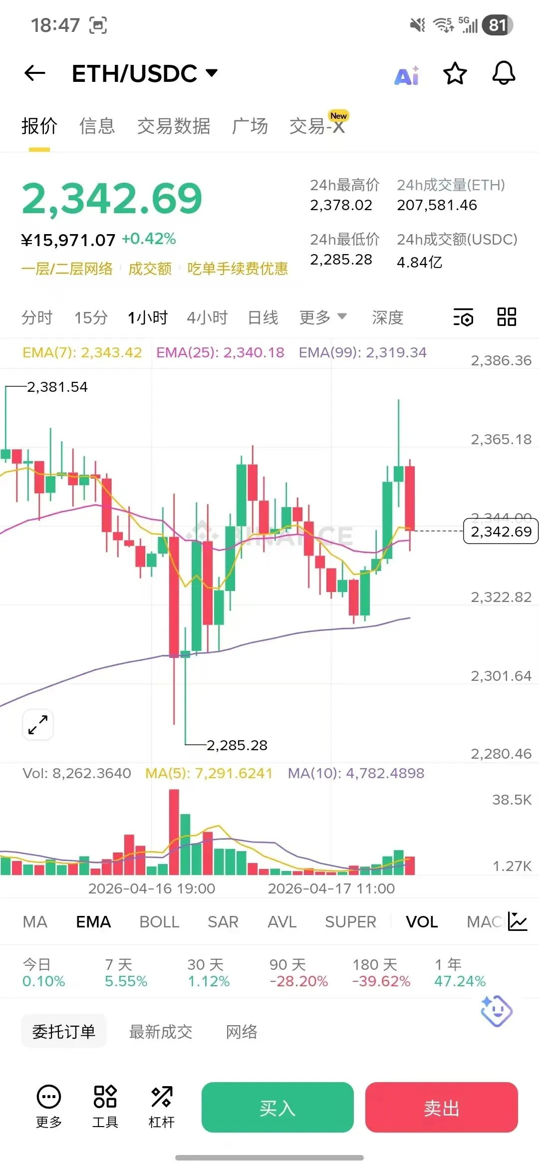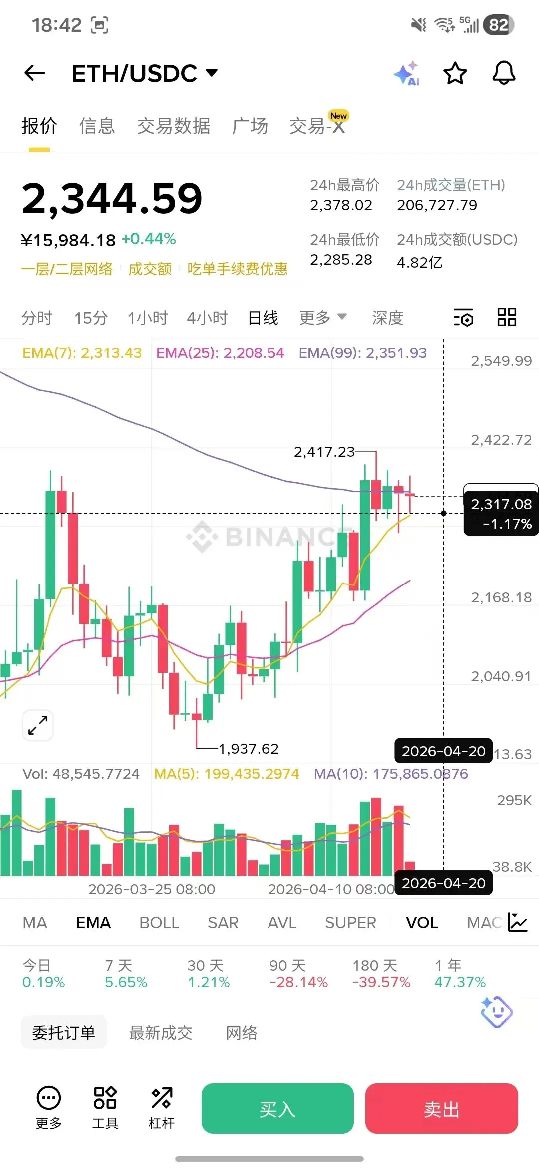 再看日线,昨天向下插针,最多到2282这一带,关键是没有跌破这周的2260附近的起涨点。这是一个很重要的位置。可以选择作为做多的止损点。小时线,上影线,下影线都很长。主要还是受消息面的影响。以太坊今天做多:可以选择在2310-2288附近建仓。高空建议选择向上插针2400附近空。高空只能快进快出,不能恋战。这是重点!4月最大的压力是周线反抽的压力2640附近。这里的空单盈亏比是最大的!