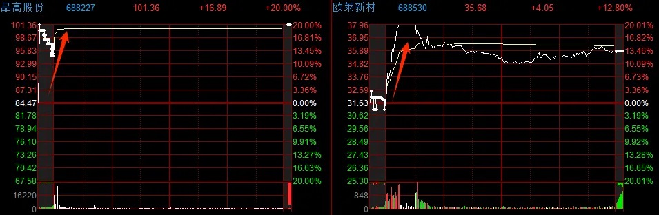 此外算力概念延续活跃,品高股份20cm涨停,圣阳股份七连板,利通电子四天三板创历史新高;此外芯片欧莱新材大涨触及涨停,玻璃基板沃格光电七天四板。