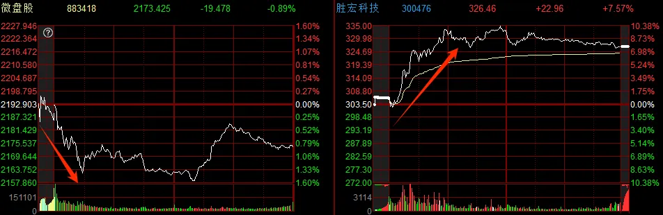 早盘轮动期间,市场持续分化,微盘股指跌超-1%,下跌个股近4000家,最亮眼的依然是权重股,胜宏科技、东山精密等涨超6%,其余方向则是出现回落,锂电池融捷股份、芯片欧莱新材等炸板。
