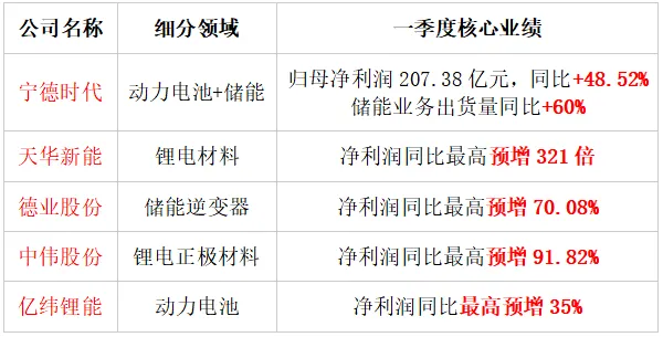 本轮锂电储能行情,绝非题材炒作,而是行业周期反转、业绩集中兑现的结果。截至4月17日,产业链龙头一季报业绩集体爆表,预喜率近乎100%,核心业绩数据一目了然: