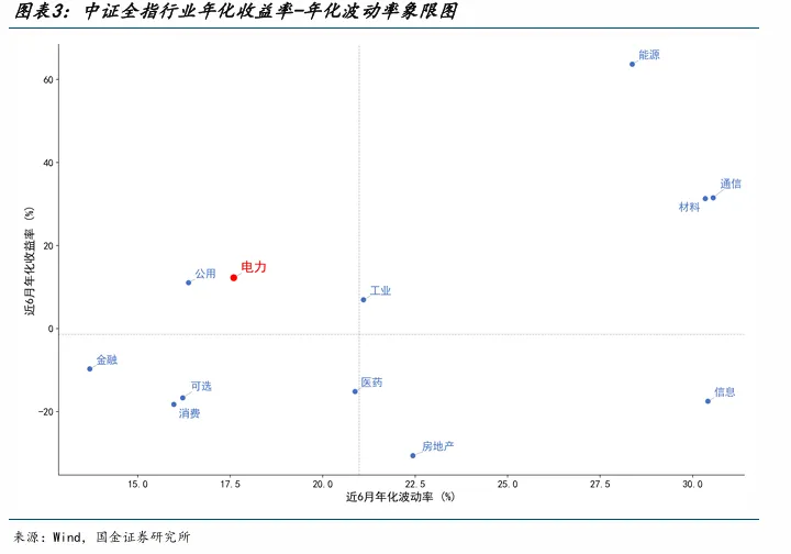 从波动特征来看,电力行业的优势并非来源于高波动下的收益放大。结合历史数据,电力指数长期年化波动率显著低于信息、通信等成长板块,整体处于低波动区间。在震荡市中,这种相对可控的波动水平,有助于提升组合的稳定性并降低回撤压力。