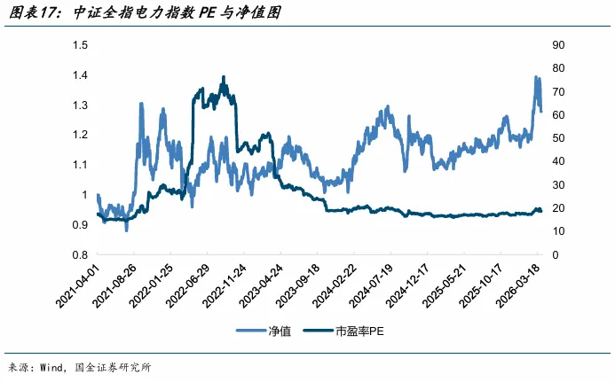 2022年以来指数总市值整体维持在2800—3300亿元区间内波动,当前3114亿元处于区间中枢附近,未出现明显收缩;而估值端则经历了“抬升—消化—回落”的完整周期,当前已进入相对底部区间。这一结构性特征表明,前期市场对电力板块的高盈利预期已基本消化,而板块基本面并未同步弱化,估值已具备较强安全边际。