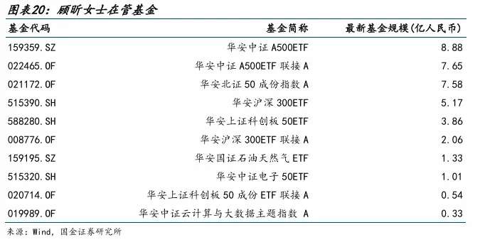 基金经理顾昕女士,硕士研究生,8年基金行业从业经验。2017年3月应届毕业加入华安基金,历任指数与量化投资部ETF研究员、基金经理助理。基金经理投资年限2.33年,在管产品10只,规模共计40.16亿元。