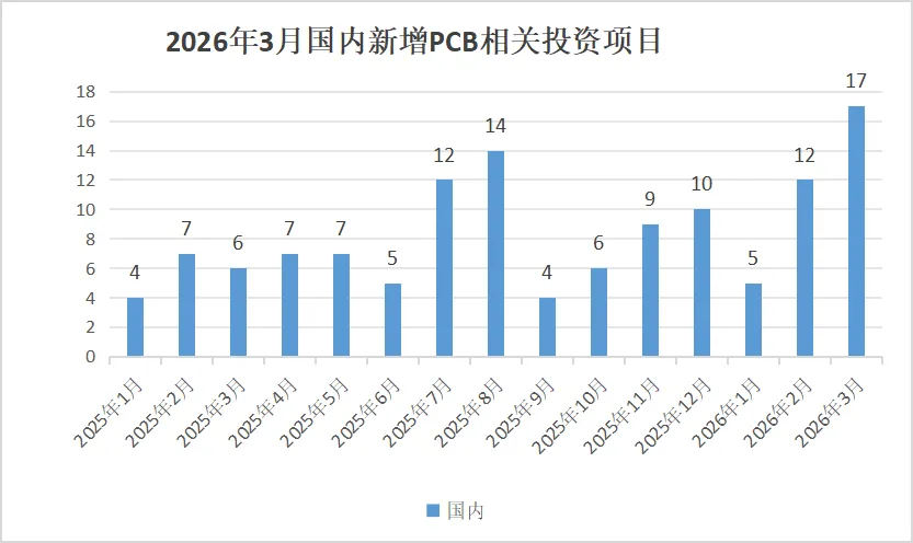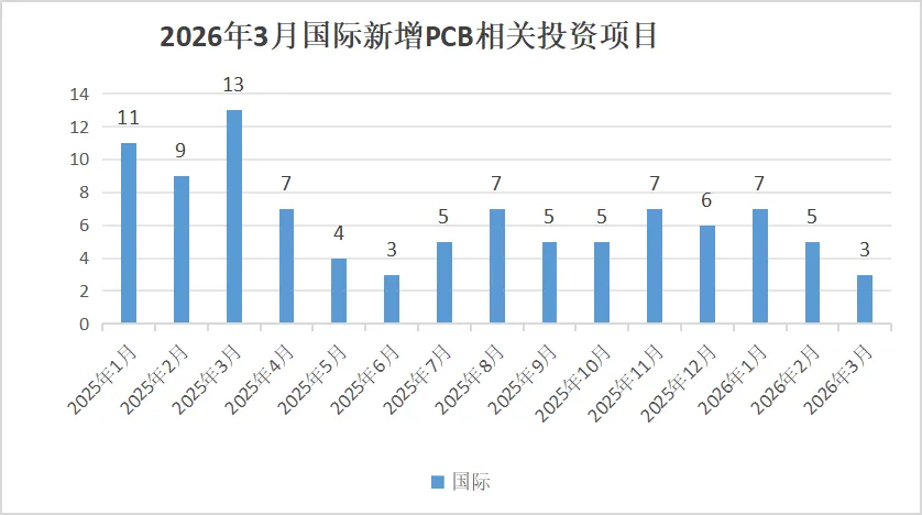 与您一路同行,做您最忠实的拥护者--PCB行业融合新媒体-2026年最有价值的电路板产业服务平台!欢迎您的关注与点赞!祝您事业有成!平安喜乐!2026年3月,全球PCB领域投资项目数量同比呈现增长态势,国内相关投资项目扩容趋势显著,投资主体以境内上市公司为主,单体项目投资规模整体处于较高水平。