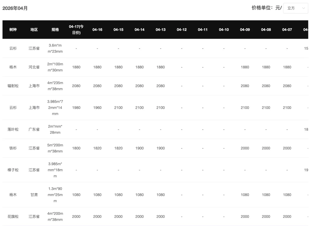 今日松木板材价格偏强运行。其中采木网平台合作报价商——江苏太仓地区客户樟子松(45*170*3.6)报价1900元/方,贵州黔东南地区客户云杉(70*145*1.49)报价1660元/方。当前市场正呈现出多重积极变化,下游需求正在缓慢复苏中寻找新的平衡。【获取今日报价商联系方式或加入采木网报价吸引更多客户,请联系13373610205(微信同号)】