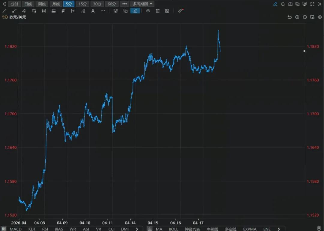 5分钟方向:上涨 ✅(从1.1520涨至1.1820+,当前继续冲高)