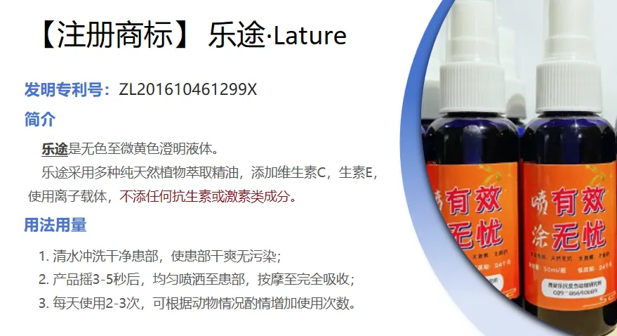 乐途是以多种天然植物精油为原料,添加益生素、维生素C、维生素E等制成,对口腔、乳房、肢蹄具有很好的保护效果,使用简单,一喷见效,受到所有用户的一致好评。
