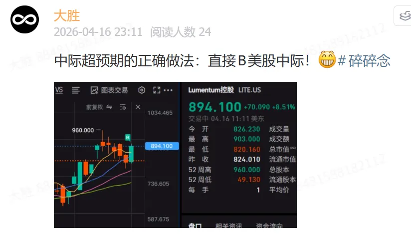 首先在CPO龙越T越少的情况下,高开有人兑现的风险是存在的;所以“加”这个选项风险挺大; 但昨天反包的行情超预期,也验证有增量资金进场,且有逼空的意向,不想加高位风险又不想错过行情怎么办?我选择了加老三,还记得我之前发过的一条推文吗?老三的任务是持续打高度引领板块整体估值提升,但实际近期大哥的表现比老二老三强太多,所以这一假设暂时无效;且昨天老二先动,有补涨的意思,也有资金预期大哥肯定超预期,那么老二也肯定没问题的演绎。这个思路的核心就是:拿映射,这跟我昨晚美区拿LITE一个思路。实际操作中,这个映射可以是老二、可以是老三、也可以是大哥产业链里的优质弹性(比如源杰被称为2X大哥,仕佳被称为2X厕所龙),只有加大哥的风险偏大。但我依然强调,高位加仓确实是刀锋舔血的行为,高位随时都有可能急剧调整,所以不好引导大家去做这种行为,这只是我的个人操作。 那么刀口舔血需要注意什么?没错就是猥琐一点,一旦不对劲了,赶紧走。尤其是在这种指数连续大涨的背景下,一旦分歧必是巨震,提前做好跑路的思想准备,加的仓就不用太担心了。 ok,以上,业绩周日晚上再看,祝各位周末愉快啦~