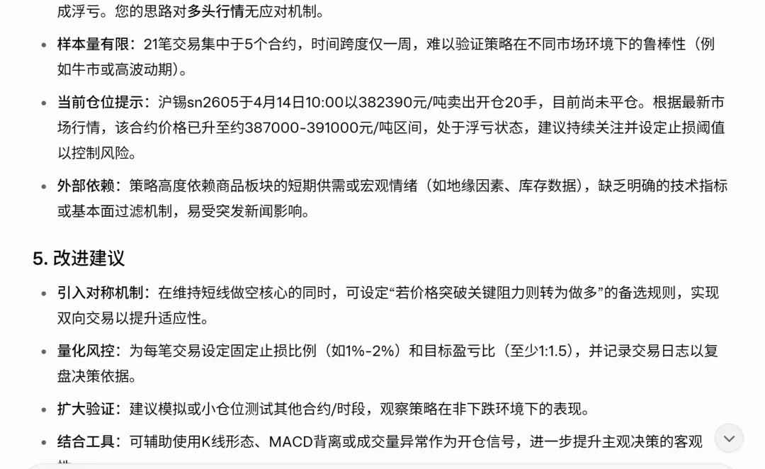 后面我又继续做了一阵子模拟交易,我的客户经理做了一份AI交易报告给我,我觉得思路有些道理,后续在实盘确实有一些受益。