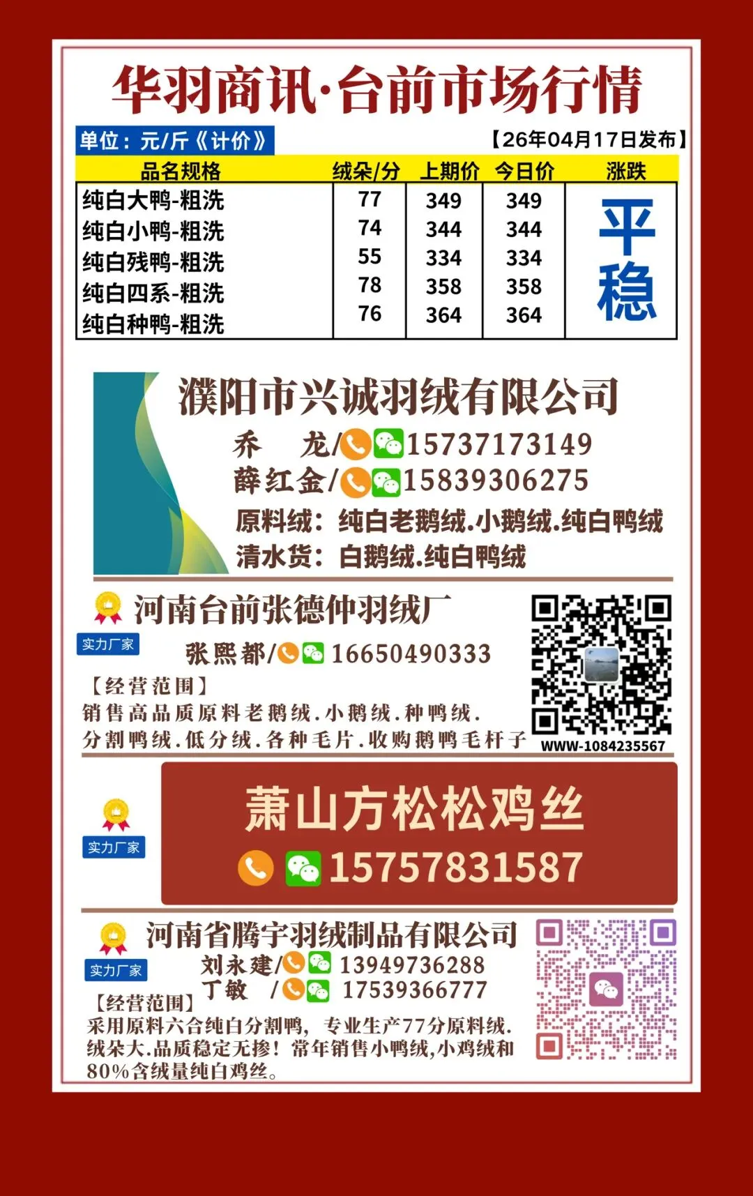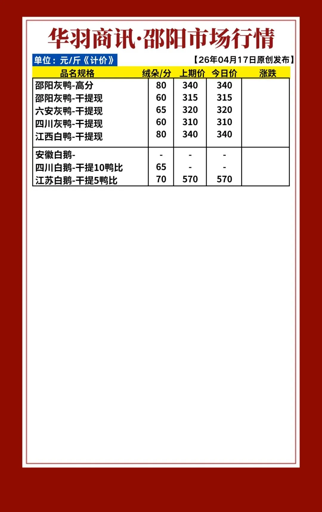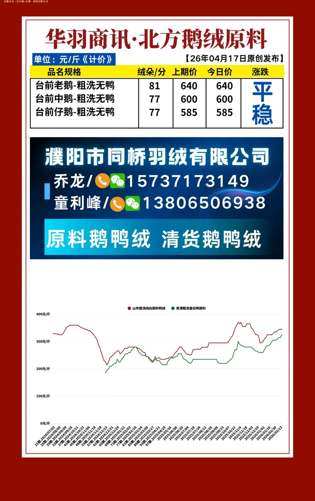 >381期 | 华羽商讯·今日原料羽绒行情【20260417发布】
