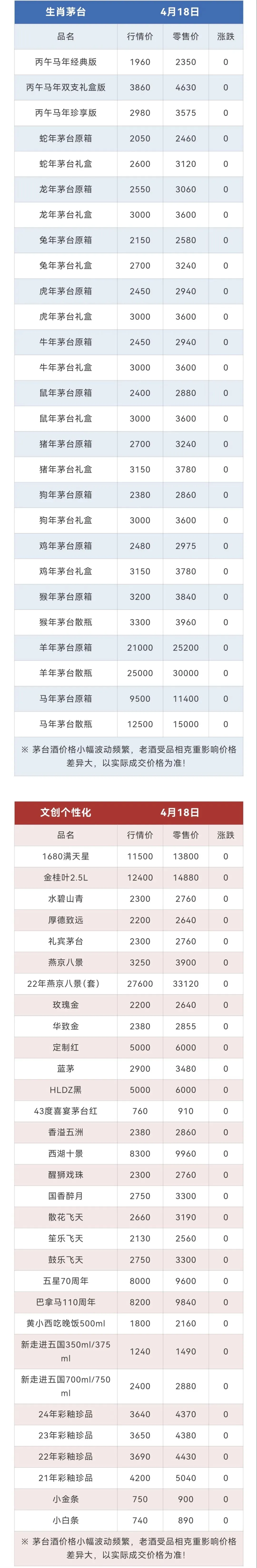 ※行情价:酒商调货价,不考虑物流运输人工成本,每个地区调货价有几十块浮动属正常现象。