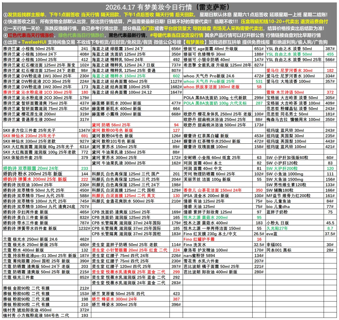 2026.4.17有梦(美妆)收货行情更新
