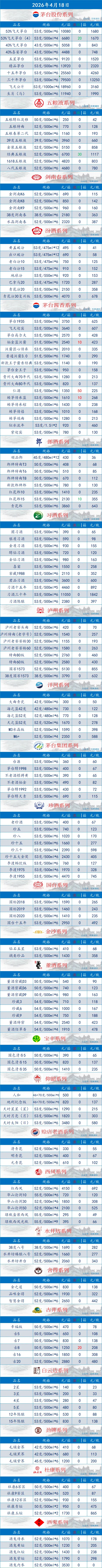 >百荣酒饮-今日中国名酒价格实时行情2026.04.18