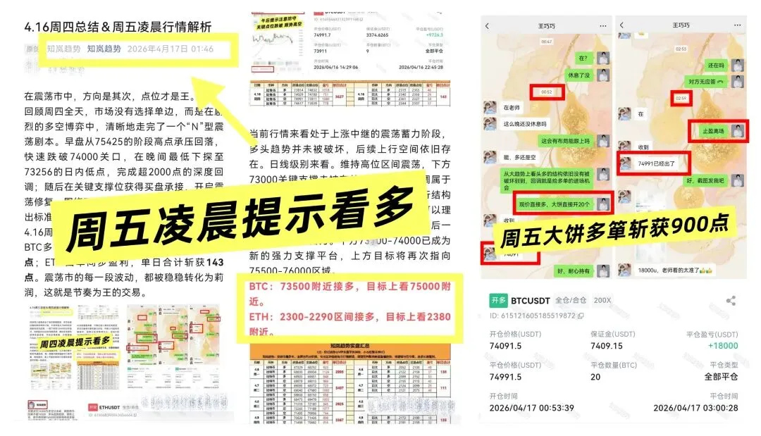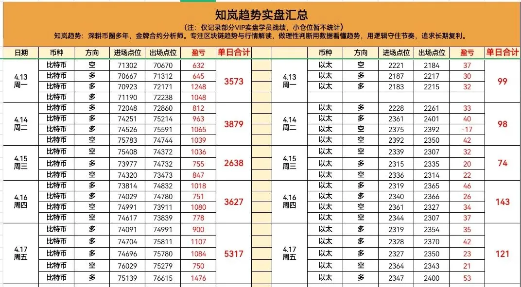 知岚实盘昨日全程精准踩中多头节奏,大饼单日累计斩获5317点,以太同步单日累计斩获121点,跟上节奏的朋友狠狠吃大肉,每一笔收益,都是对趋势的尊重,也是对自己节奏的验证。