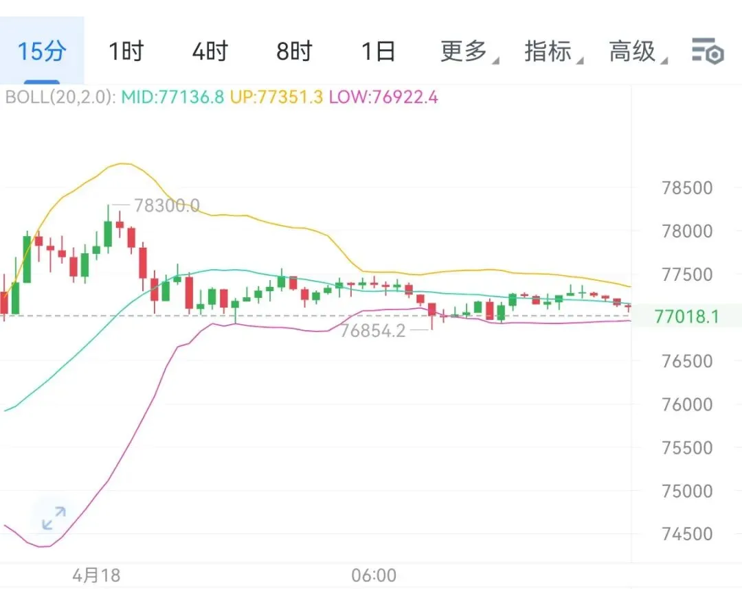 BTC:回踩76800-76600区间多,目标上看79000附近