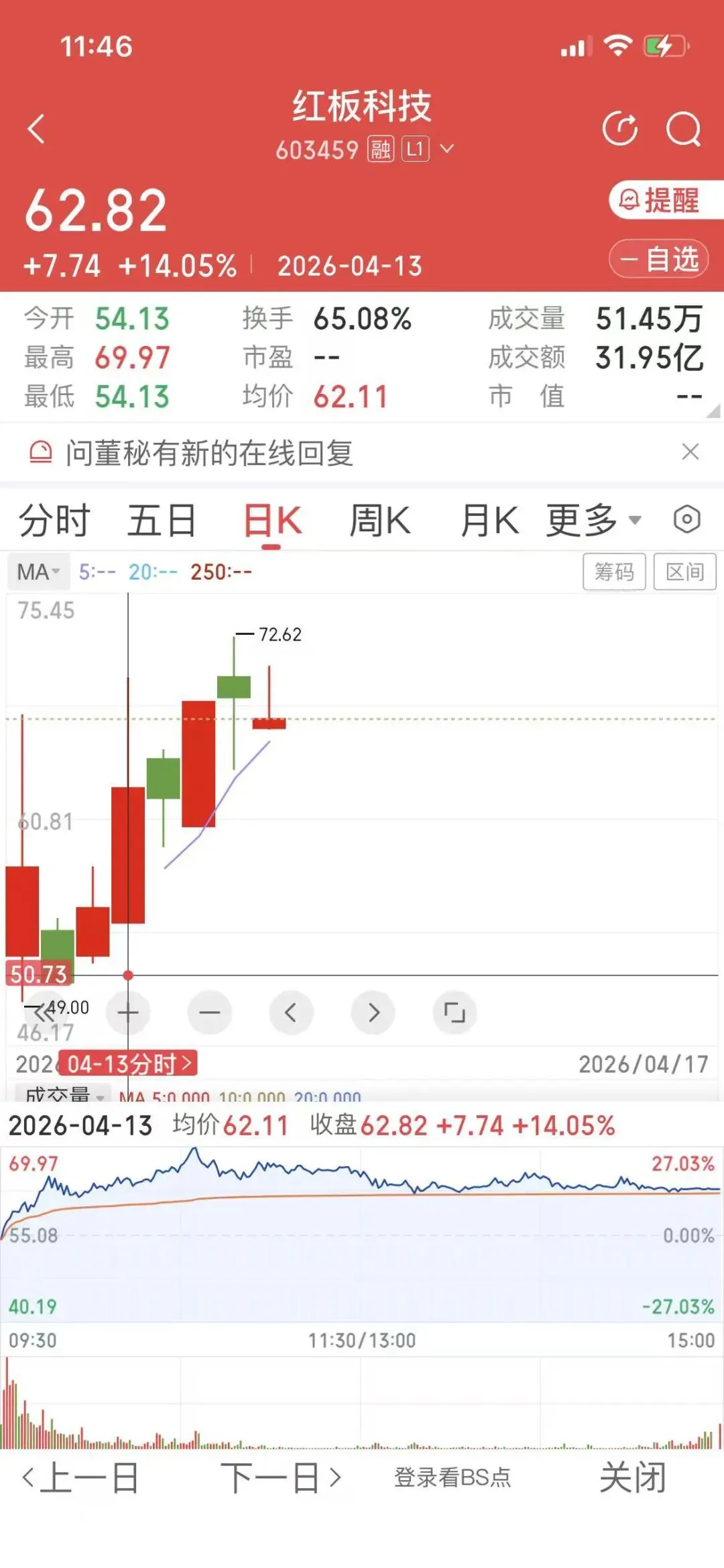 从4.8开盘前的消息看(美伊正式确认进入谈判阶段),所以,4.8指数预期是大涨,红板科技是不设涨跌幅限制的新股,而且也是pcb+cpo,且有同题材的东山精密的大涨引领,资金为了寻求高收益,很有可能做红板科技这种无涨跌幅限制的个股。(模仿无线传媒+长联科技)