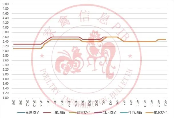 2026年3月6日-2026年4月19日主流地区白羽鸡鸡苗均价走势图