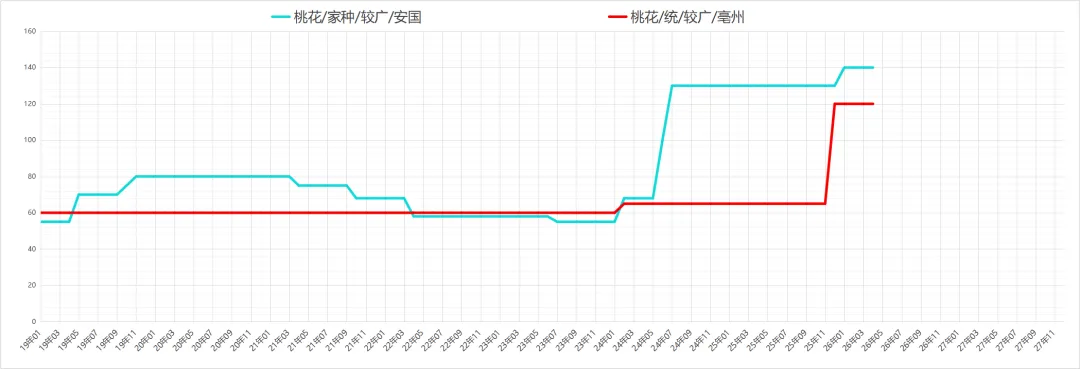 桃花行情明显下滑,目前正值产新中,受新货上市影响,近期行情出现明显下滑,货源仍处于正常购销状态,现市场桃花花蕾货多报价在70元,继续关注后期货源走销情况。