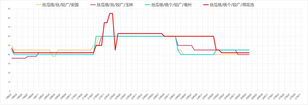 丝瓜络价格较前期有小幅下降,新货陆续上市,近日有商寻货,货源走销以小批量走动为主,持货商家出售意愿较强,现河北丝货价格在35-40元。