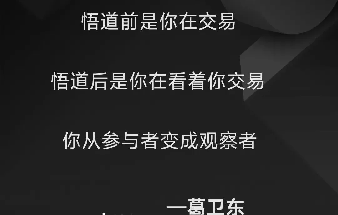 如若很多年前要看到这句话,觉得他故弄玄虚,真的当你交易得足够久以后啊,你要能理解其中所表达的这个含义的话,真的是非常的精妙,非常非常精妙,有时候生活中很多答案就摆在那里,但是你不经历这些坎坷以后,你悟不到其中的真谛,所以生活啊,交易啊,都没有捷径。我想把这句话分享给大家,也分享给我自己,祝好!