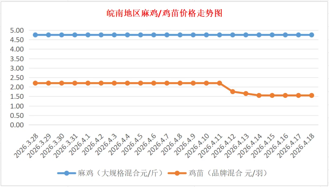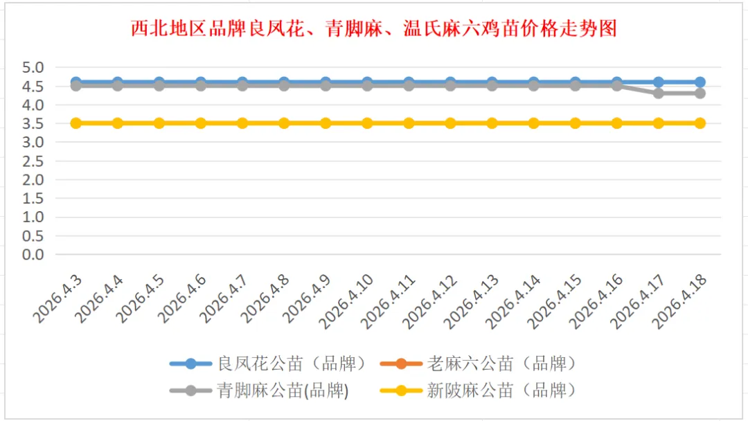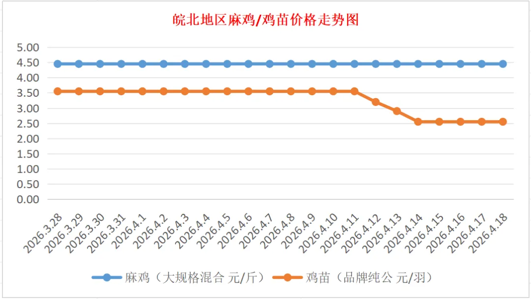 品牌新陂麻:价格稳定,到户价公苗4.50元/羽,稳。