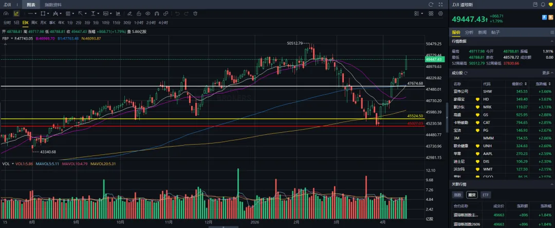 1、道琼斯指数日K线上升形态:本周一,道指盘中回调在半年线附近后再次拉升,目前三大指数中道指还没有新高。月K线观察,之前复盘指数回调至月K线支撑位是有效的。