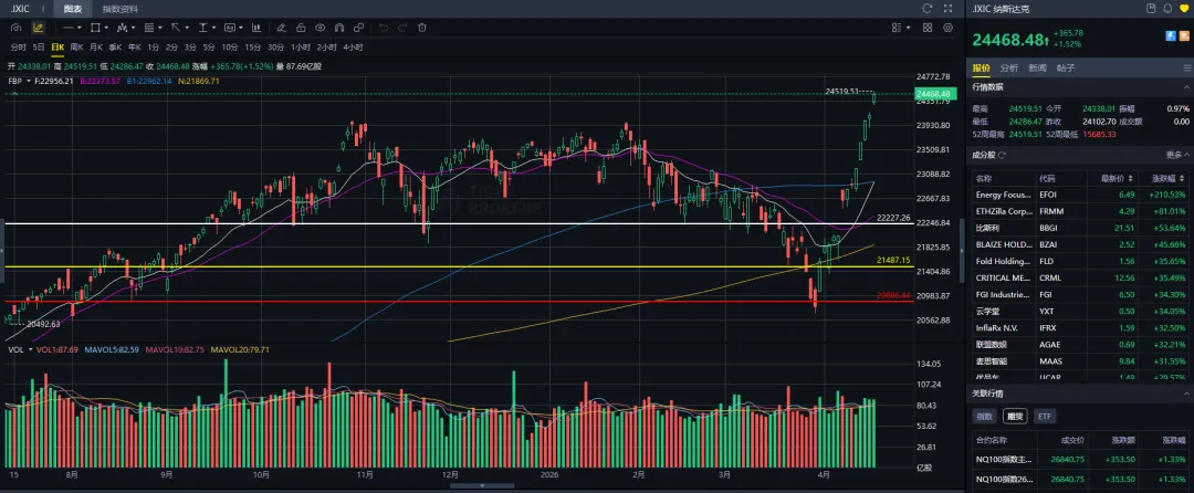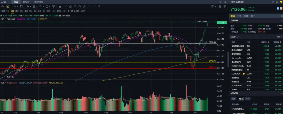 最近这一轮指数创新高的反弹,大致路径是这样的:先从META这种相对低位、前期超跌的个股开始,机构集中回补,然后逐步扩散到亚马逊、谷歌、英伟达、微软、特斯拉等权重股,轮动之后形成共振,最终一起推动指数走出新高。